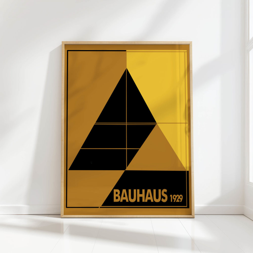 This print features a stark geometric composition that draws inspiration from Bauhaus design principles. A large central triangle dominates the piece, segmented by lines that create an intriguing play of shapes. The use of a restrained color palette emphasizes the boldness and simplicity of the design, while the incorporation of typography adds an element of historical context to the artwork. This piece is an excellent representation of the fusion between form and function, and it captures the timeless essence of the Bauhaus aesthetic. Ideal for those who appreciate minimalist design and modernist art, this piece can serve as a focal point in a variety of settings.