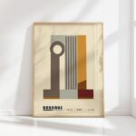 This Bauhaus print captures the essence of modernist design with its clean, geometric shapes and subtle interplay of neutral colors. The simple yet striking design elements create an elegant and timeless piece, ideal for those looking to add a touch of sophistication to their space. The print exemplifies the Bauhaus style of unifying art, craft, and technology, making it a perfect conversation starter for lovers of historic art movements and contemporary aesthetics alike.