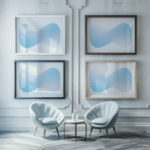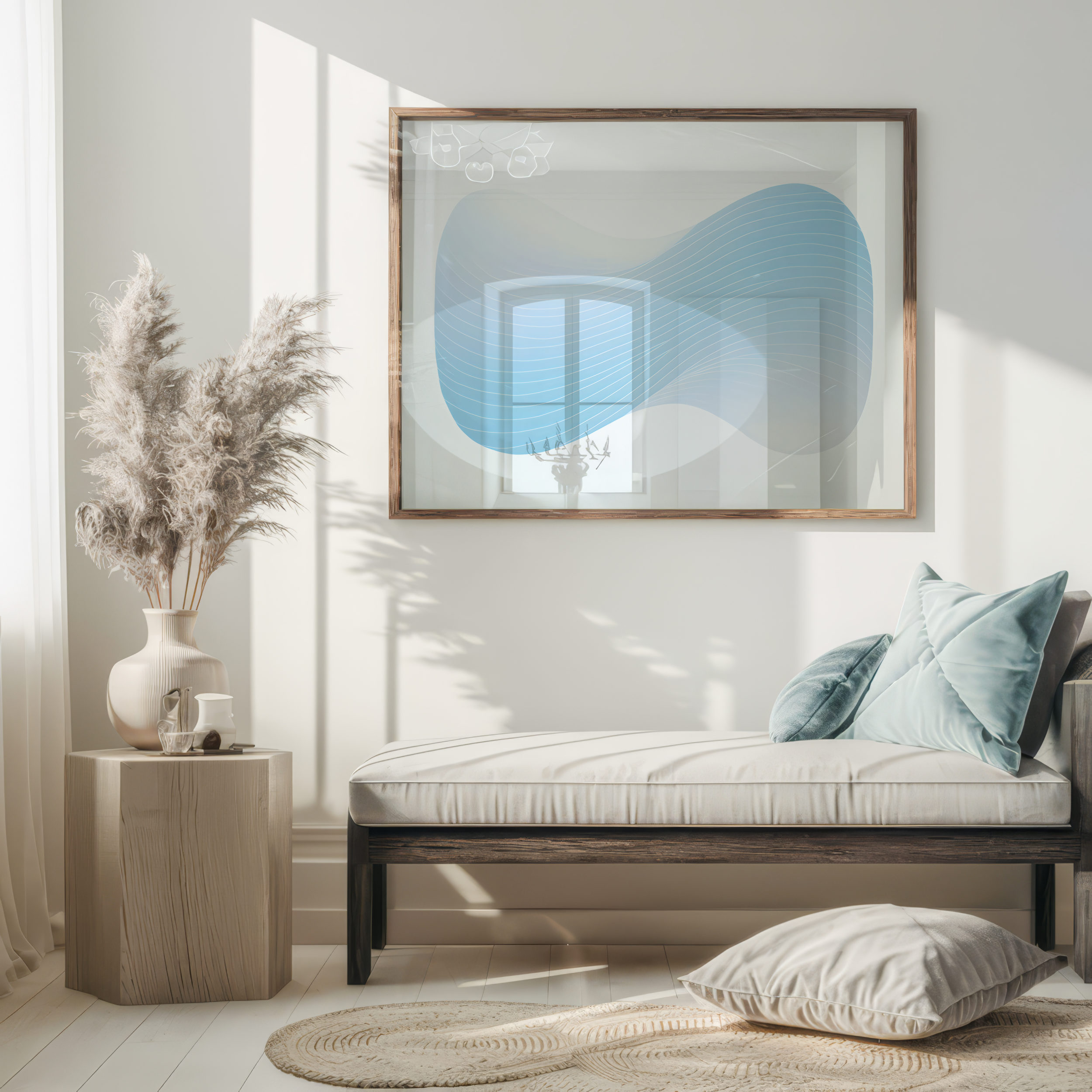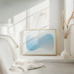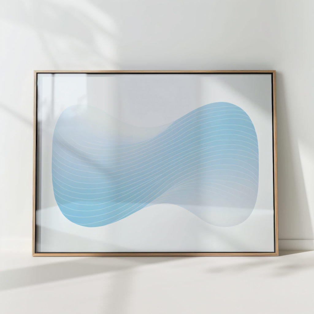 This print captures the essence of tranquility through its serene blue wave pattern. Flowing lines create a sense of movement, reminiscent of gentle ocean waves that evoke a calming atmosphere. Its subtle gradation of blue hues enhances any space with a touch of cool sophistication. Perfect for modern decor, this abstract print brings a minimalist aesthetic to both residential and commercial environments. Its clean design enables it to blend seamlessly with existing decor while providing a focal point that is both elegant and understated.