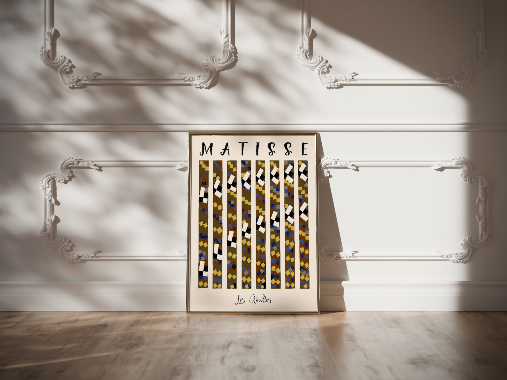 This high-quality Henri Matisse print captures the dynamic essence of Les Abeilles. It showcases Matisse’s abstract style with a lively composition of geometric shapes and contrasting colors. The warm palette of golds, browns, and blues creates a vibrant atmosphere that is both modern and timeless. This print brings a piece of avant-garde art history into any space, representing Matisse’s innovative approach to form and color. Perfect for adding a touch of sophistication to any art lover’s collection.