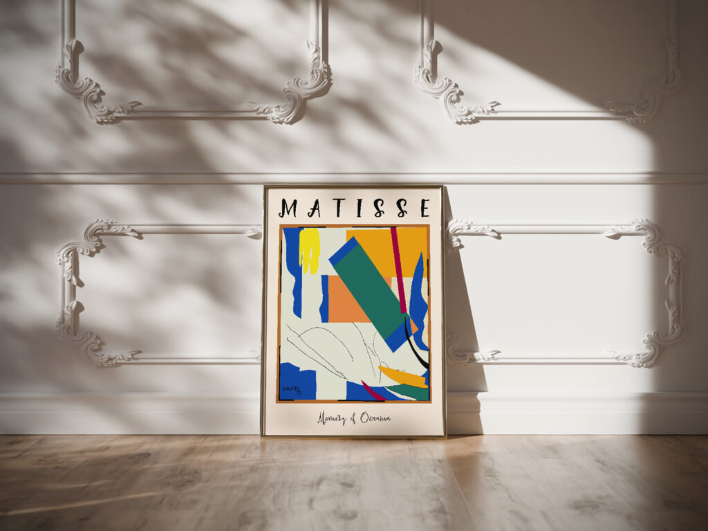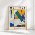 This Henri Matisse Print showcases the artist’s distinct use of color and form, titled Memory of Oceania. Its vibrant palette creates a dynamic visual space, with intersecting abstract shapes suggesting natural forms and landscapes. The use of bright yellows, blues, greens, and reds, alongside bold black lines, conveys a sense of movement and energy. This high-quality reproduction offers a glimpse into Matisse’s modernist approach, making it an eye-catching piece for any art enthusiast seeking to add a touch of historical vivacity to their collection.
