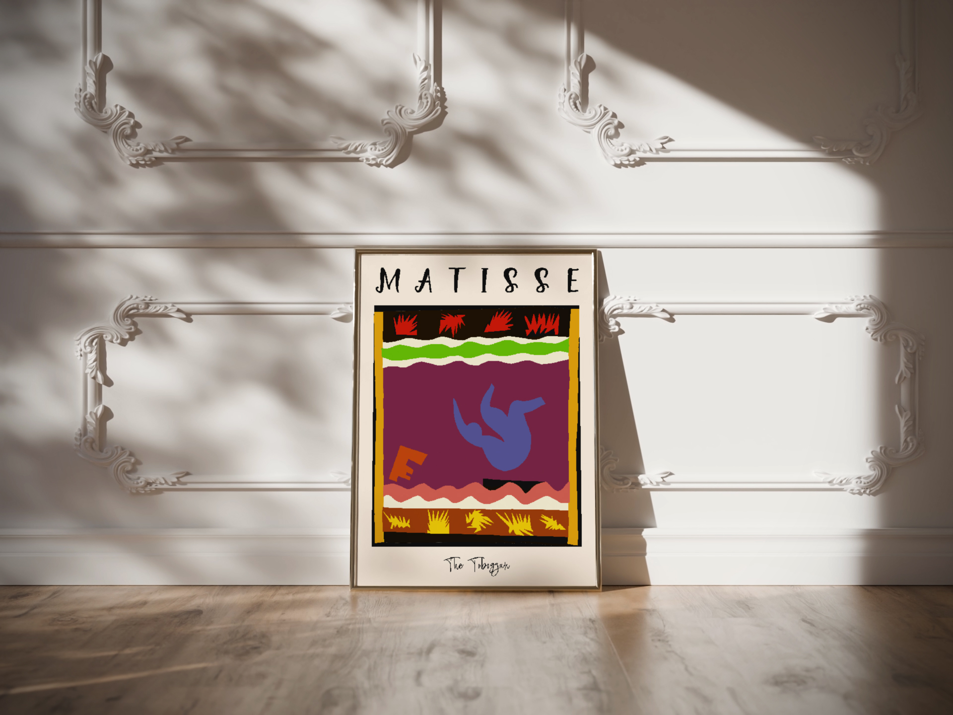 This high-quality print showcases Henri Matisse’s The Toboggan, an art piece recognized for its vibrant colors and abstract shapes. The print captures Matisse’s unique style, utilizing bold blocks of color to create an image that is open to interpretation. The central blue figure appears to be in motion, creating a dynamic focal point within the harmonious color scheme. The decorative border adds a layer of depth, framing the composition and enhancing the visual appeal of this iconic work. Perfect for art aficionados and those seeking a pop of color, this print brings a piece of art history into the modern home.