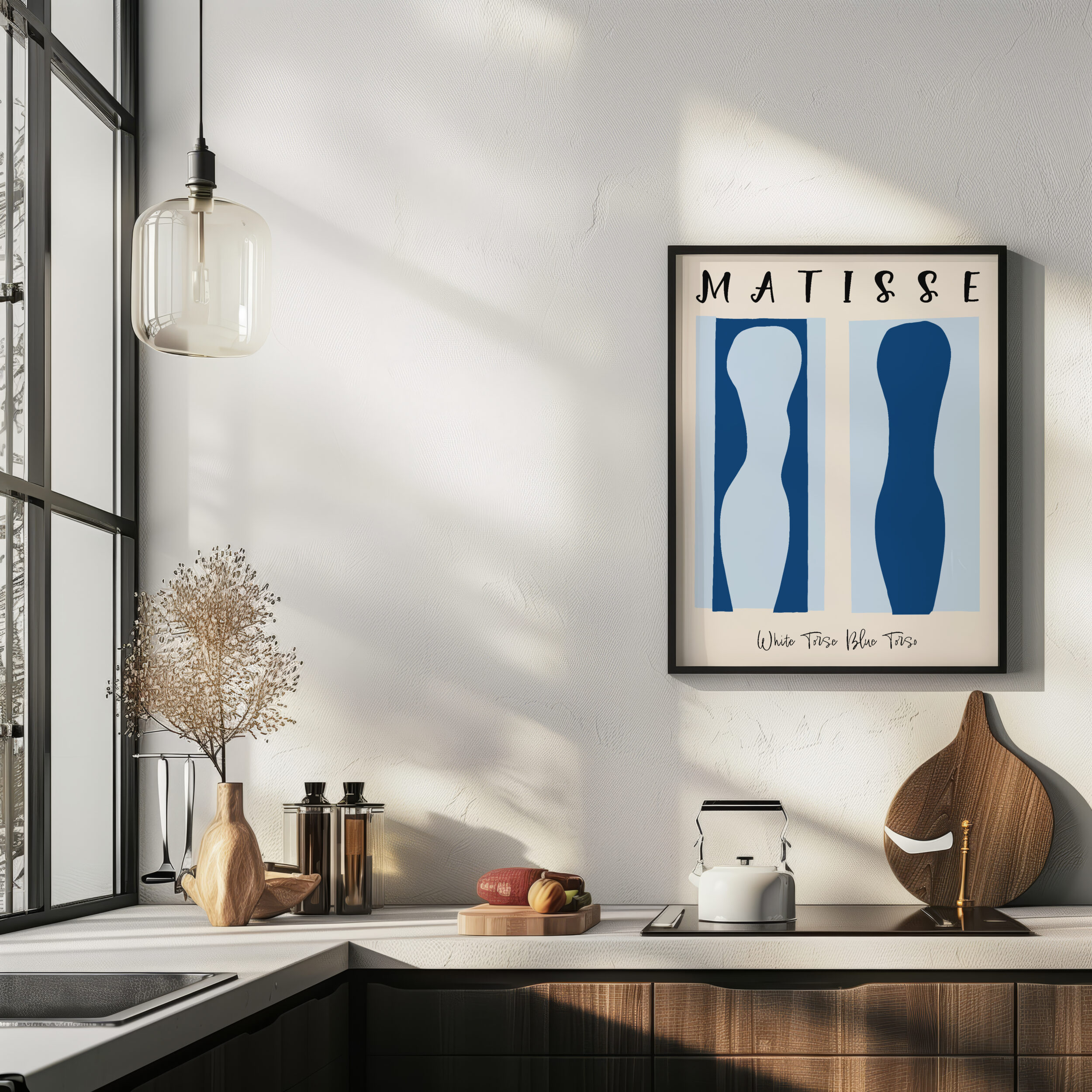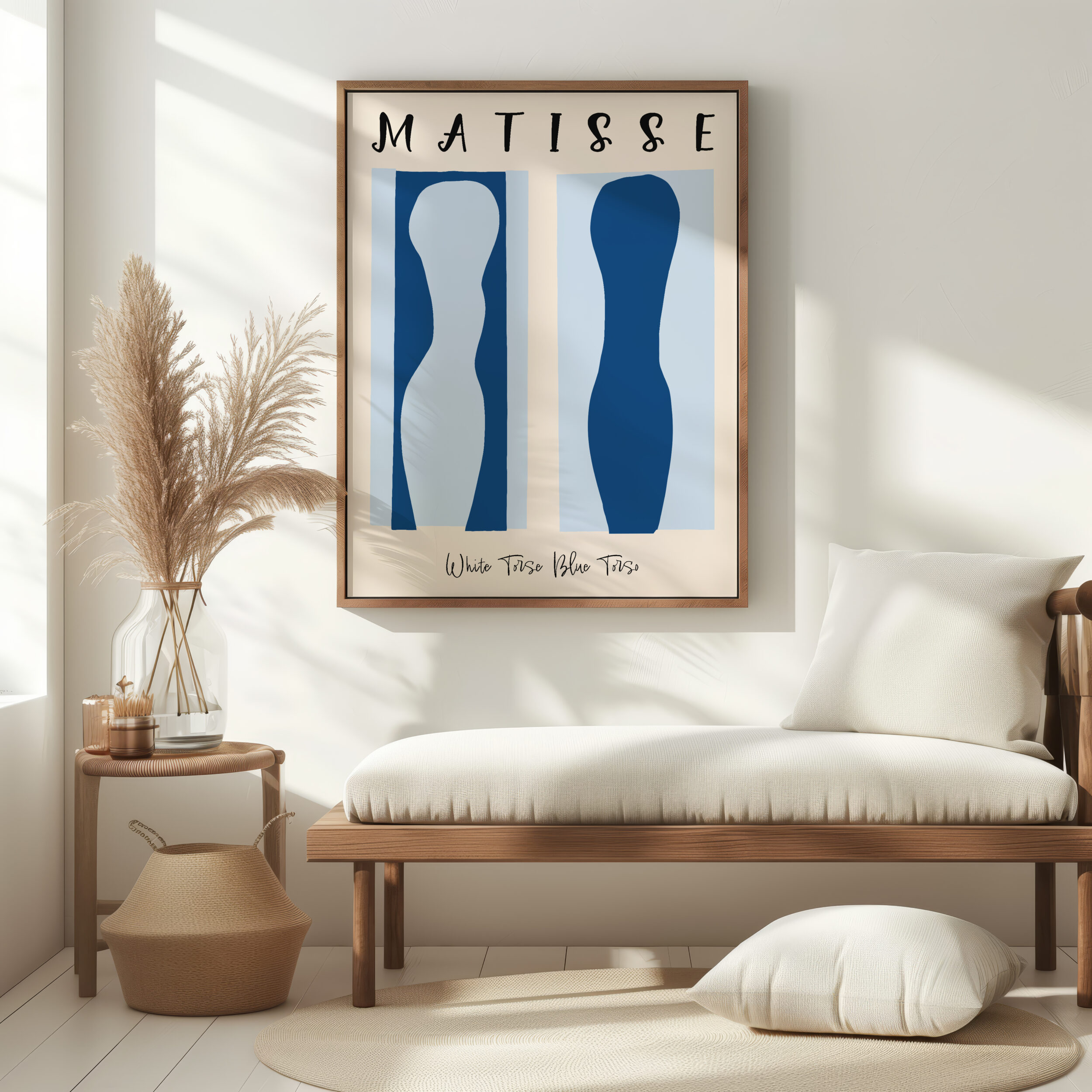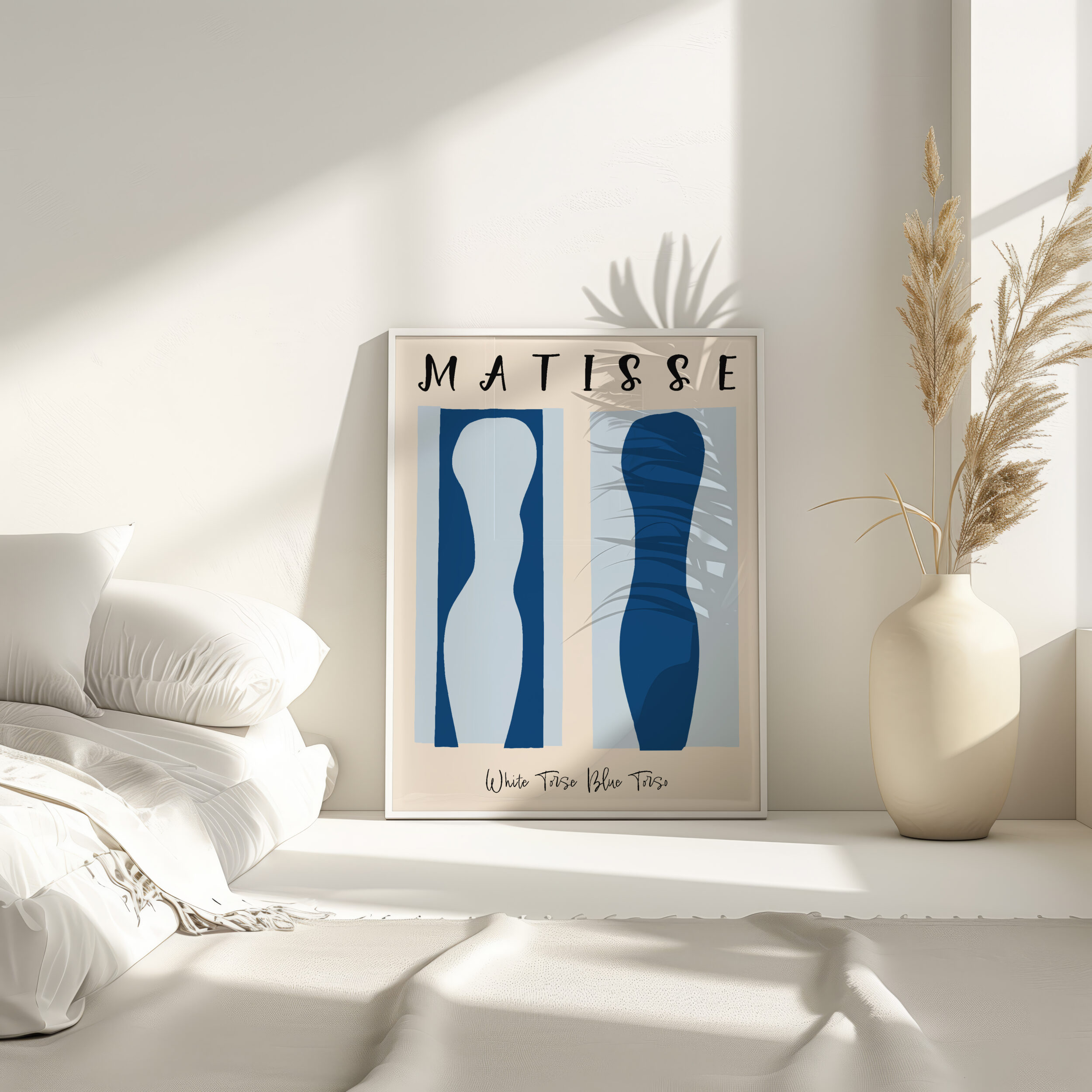 This high-quality print captures Henri Matisse’s vision of simplicity and elegance. Demonstrating his genius in reducing figures to their most basic forms, this artwork presents two human silhouettes using cool shades of blue. The contrasting duo, titled White Torso, Blue Torso, showcases Matisse’s abstract interpretation of the human form and reflects the influence of his cut-out technique. Perfect for any space, this print brings a touch of Matisse’s modernist aesthetic to your home or office decor.