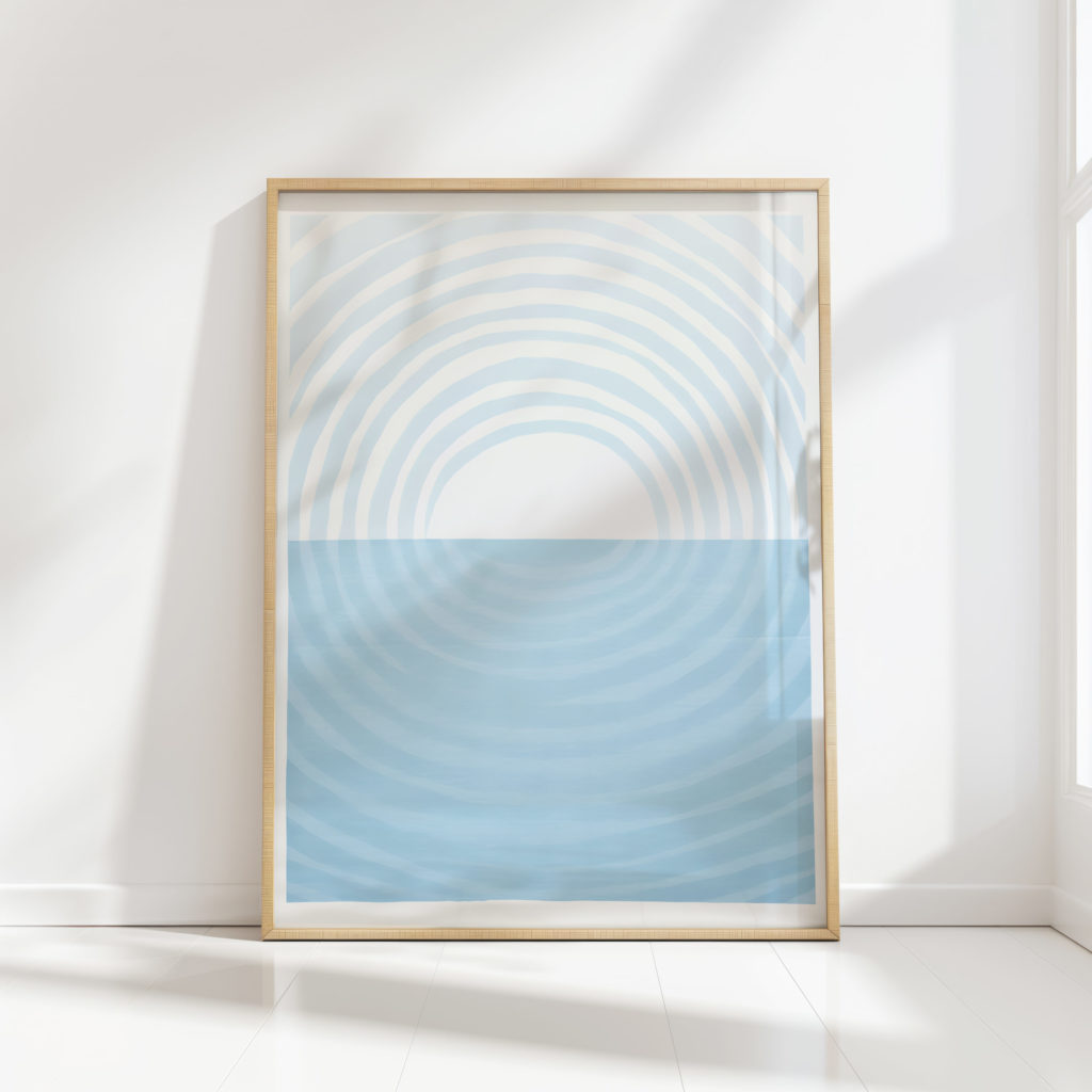 This high-quality print captures the essence of tranquility with its soft blue hues and rhythmic abstract lines, evoking a sense of peacefulness and continuity. The concentric circles create a dynamic visual effect that’s both modern and minimalist, perfect for adding a serene touch to any room. Ideal for those who appreciate the subtleties of abstract art, this print serves as a gentle reminder of calm and harmony in today’s fast-paced world, making it a meaningful addition to personal or professional spaces seeking a touch of elegance and simplicity.