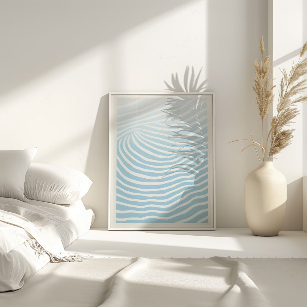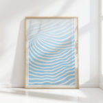 This serene art print features a harmonious arrangement of blue and white lines that evoke the gentle movement of waves. Its cool color palette and abstract geometric form create a tranquil and sophisticated atmosphere, making it a perfect addition to any contemporary space seeking a touch of calm and elegance. The flowing design of this artwork can complement various interior styles, especially those emphasizing simplicity and modern aesthetics. Whether displayed in a living room, bedroom, or office, this print serves as a visually soothing element while infusing a space with a sense of peacefulness.