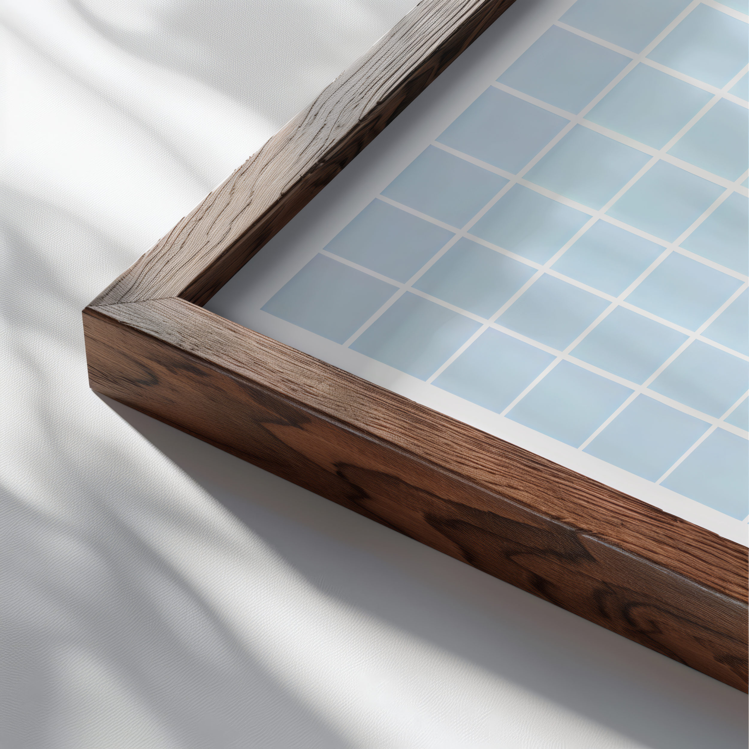 This High Quality Print features a tranquil and clean design with a grid of squares set against a gradient blue background. The print’s soothing shades of blue evoke a sense of calm and are perfect for adding a touch of serenity to any modern space. Ideal for contemporary décor, this art piece can complement various room settings, from an office to a living room. The minimalist design ensures it won’t overwhelm your space but will enhance the aesthetic with a subtle, elegant touch.