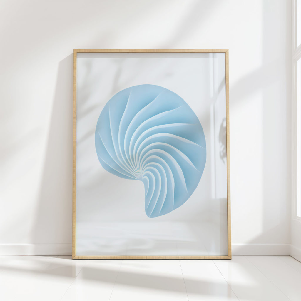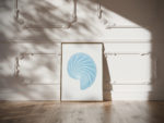 This serene print captures the essence of tranquility through an abstract depiction of a spiral shell. The cool blue hues evoke a sense of peace and are reminiscent of the ocean’s soothing qualities. Its clean lines and minimalist presentation make it an ideal choice for contemporary interiors, adding a touch of elegance and simplicity. This artwork brings a calming presence to any room, making it a perfect statement piece for those looking to create a relaxing atmosphere in their living space or office.