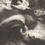 This dramatic black and white print captures a solitary dove struggling against a tempestuous sea. Fierce waves encircle the bird, creating a whirlpool effect that draws the viewer’s eye towards the center of the composition. From the ominous clouds, a beam of light breaks through, suggesting a divine presence or a glimmer of salvation. The contrast between the dark tones and the beacon of light emphasizes the themes of turmoil and resilience. The artist, Carel Adolph Lion Cachet, has skillfully used strong imagery to evoke feelings of hope amidst despair.
