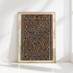 The art piece “Byzantine Ornament” by Elizabeth A. Nedwill presents a symmetrical design that captures the essence of Byzantine decorative art. Elaborate scrollwork and stylized foliage are interwoven in a cohesive, elegant manner. Earthy hues emphasize the ornamental details, conveying a sense of antiquity and reverence. Its overall design embodies a spiritual quality, evoking the rich visual traditions associated with Byzantine ecclesiastical artistry.
