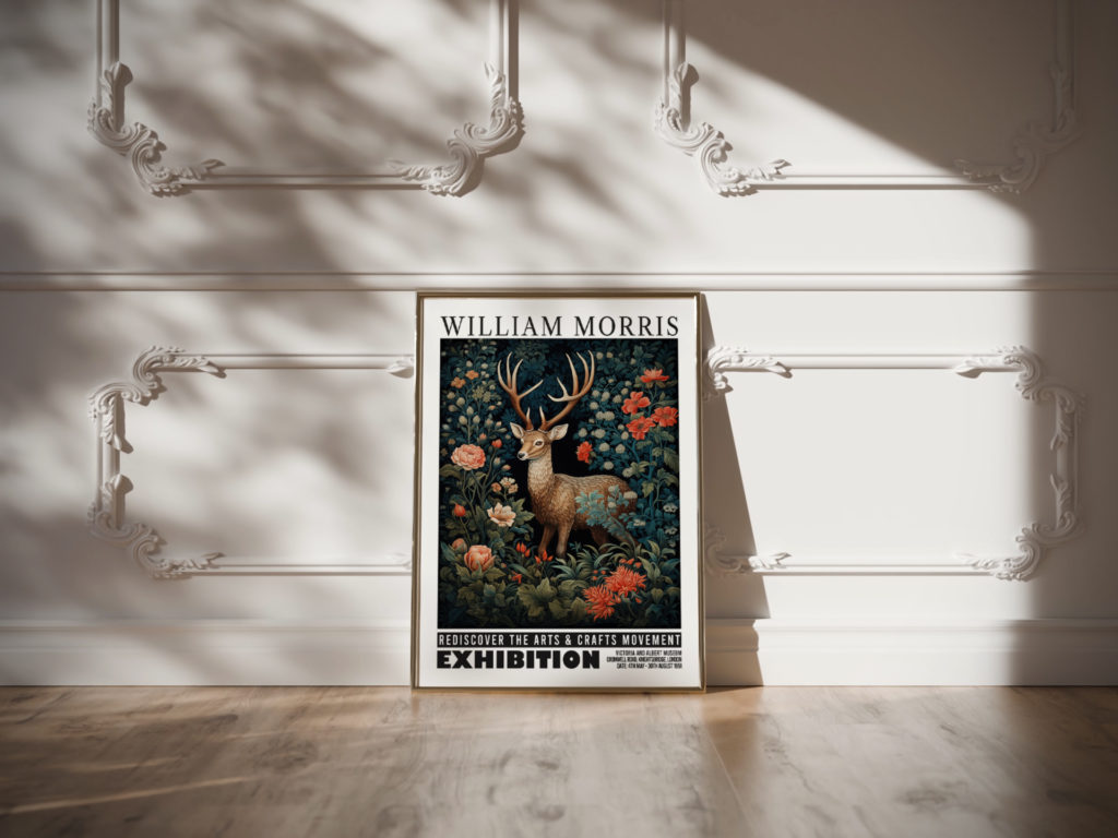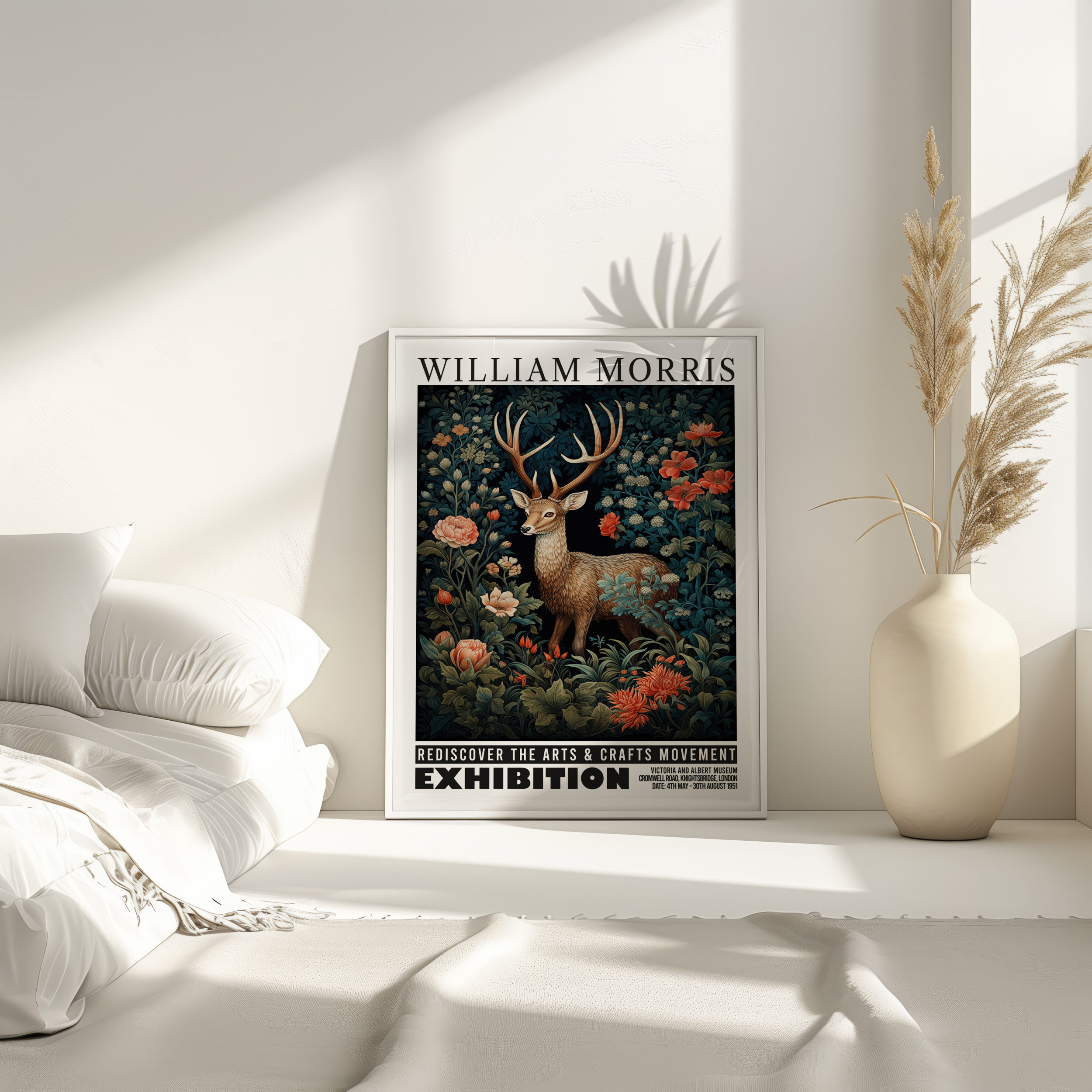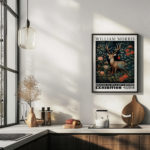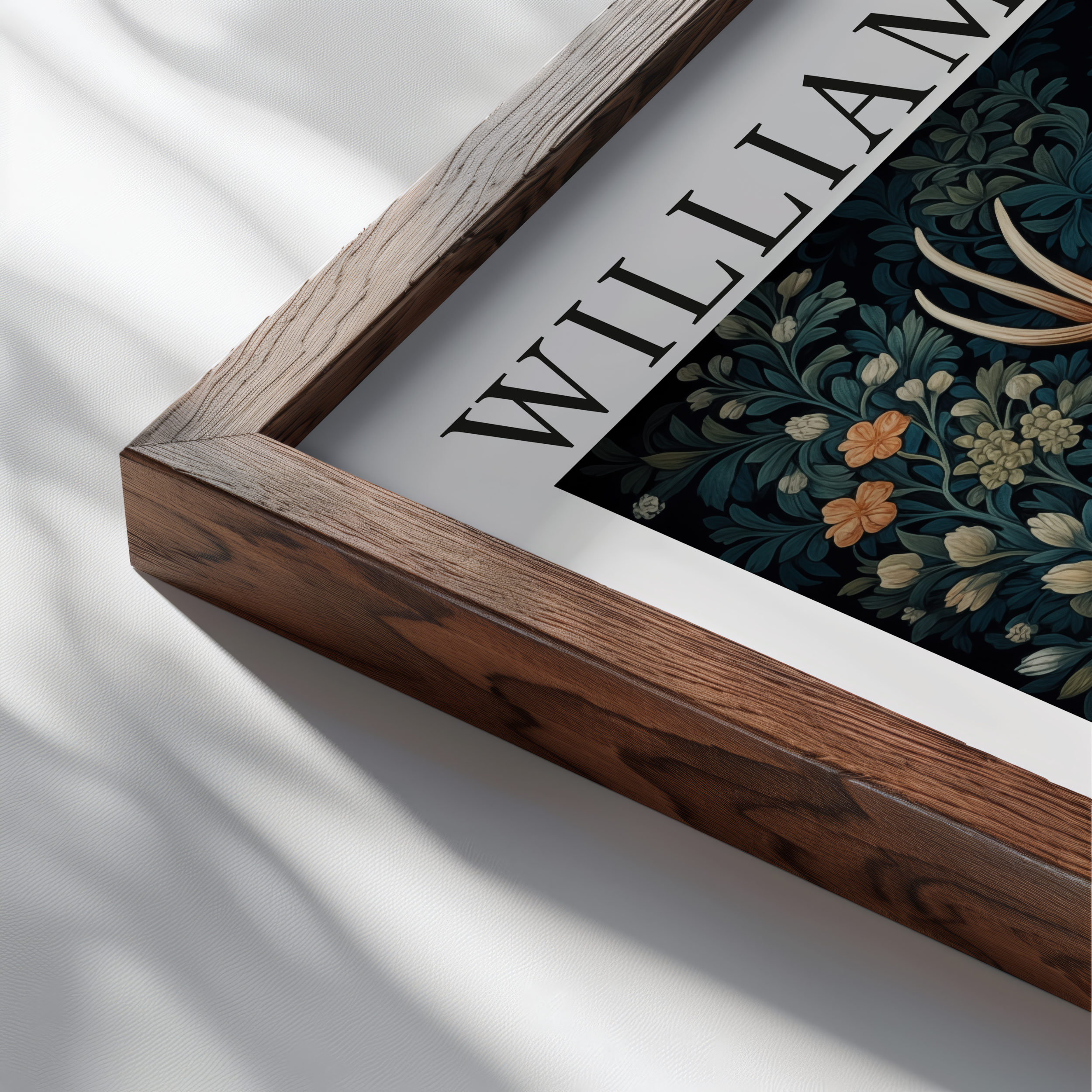 This elegant art print features a stately deer set against a backdrop of dense, dark botanicals. The beautiful animal stands proud and serene amongst an array of blooming flowers and lush greenery, exuding a timeless grace. This striking work captures the essence of Victorian art with a touch of modernism, making it a sophisticated piece for any interior. The rich color palette and intricate details create a sense of depth and tranquility, providing an instant centerpiece for any room. Whether for a lover of nature or an enthusiast of classic design, this print is sure to inspire and add a touch of elegance to any space.