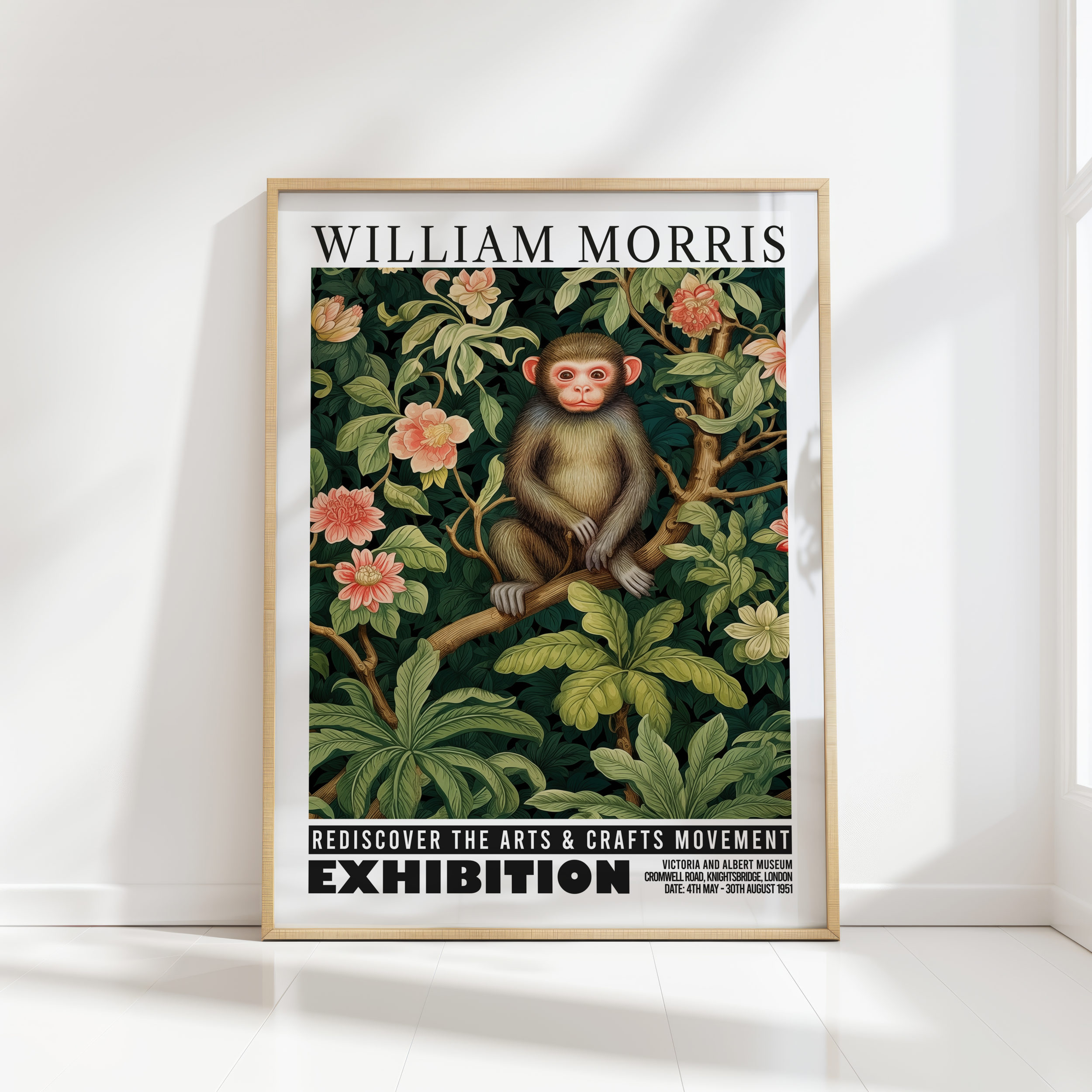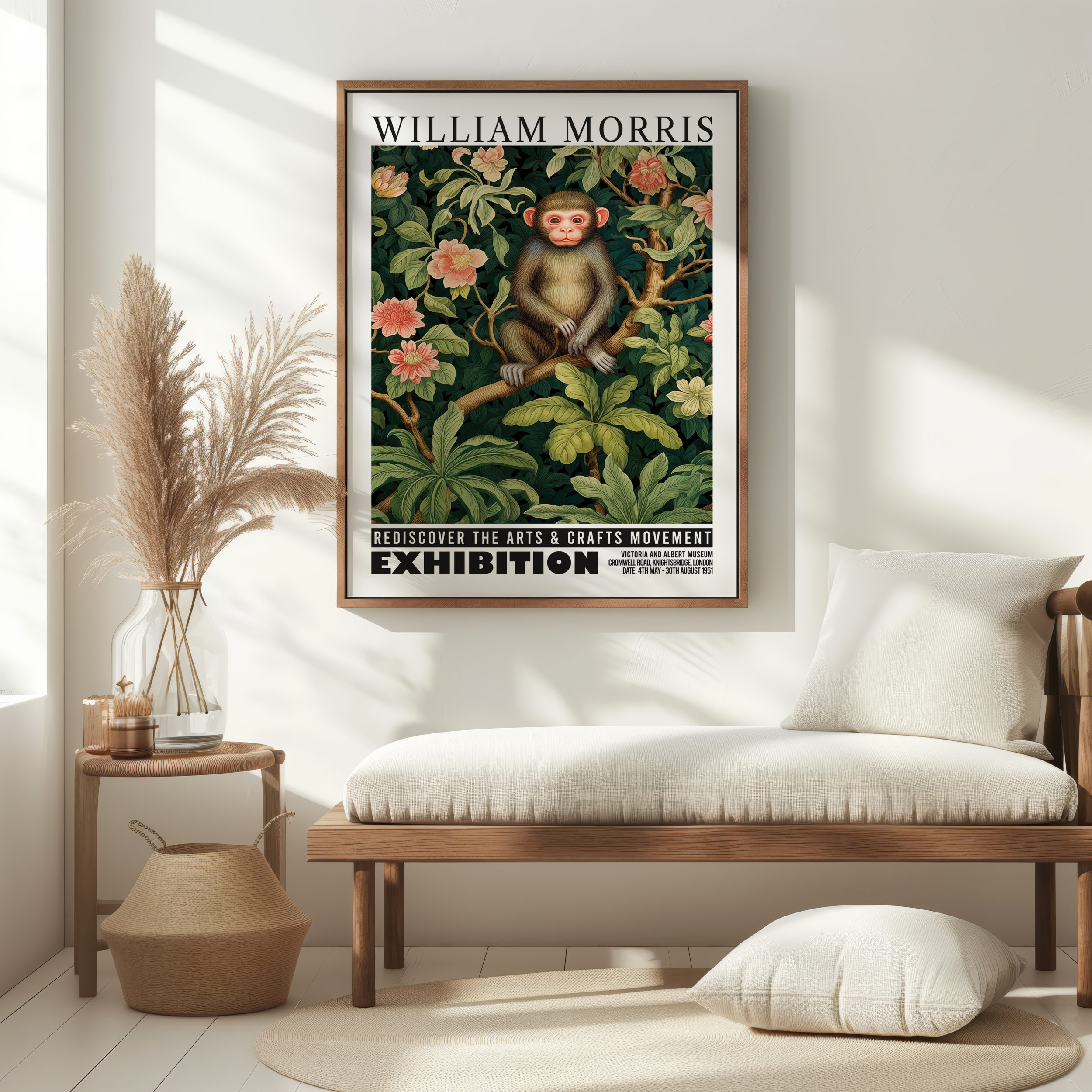 This exquisite print features a centerpiece monkey rendered with amazing detail and expression, posing amidst a vibrant scene of blooming flowers and rich green leaves. The artwork embodies a Victorian charm, showcasing intricate patterns and a lively yet elegant botanical backdrop that brings a touch of nature’s serenity into any space. The warm color palette creates a welcoming atmosphere, while the monkey adds a whimsical twist to the classic floral motif. Perfect for those who appreciate the beauty in nature’s intricacies and the finesse of art that captures the essence of life in a still image.