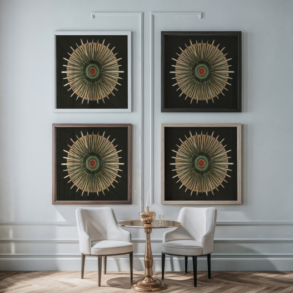 - Our frames are crafted from pine wood, available in three elegant colors: black, white, and natural wood. Each frame is carefully made to complement your art beautifully.