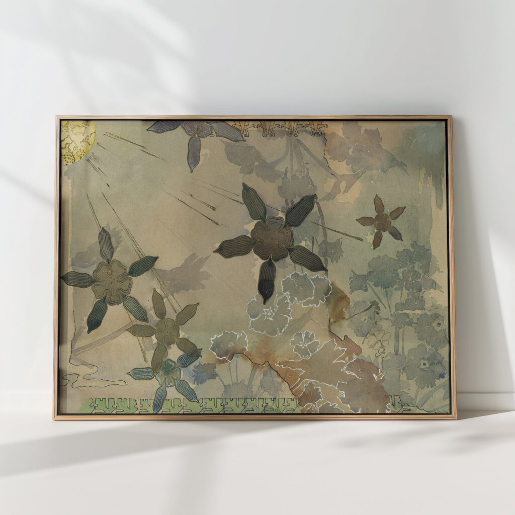 “Stylised Plants (Study) – Augusto Giacometti” showcases a compelling artistic vision blending natural forms with abstraction. The artwork captures the essence of flora through a stylized lens, emphasizing patterns, shapes, and the interplay of light and shadow. The use of a muted color palette and the strategic placement of botanical elements create a harmonious and intriguing composition that invites contemplation and underscores the artist’s innovative take on representing plant life.