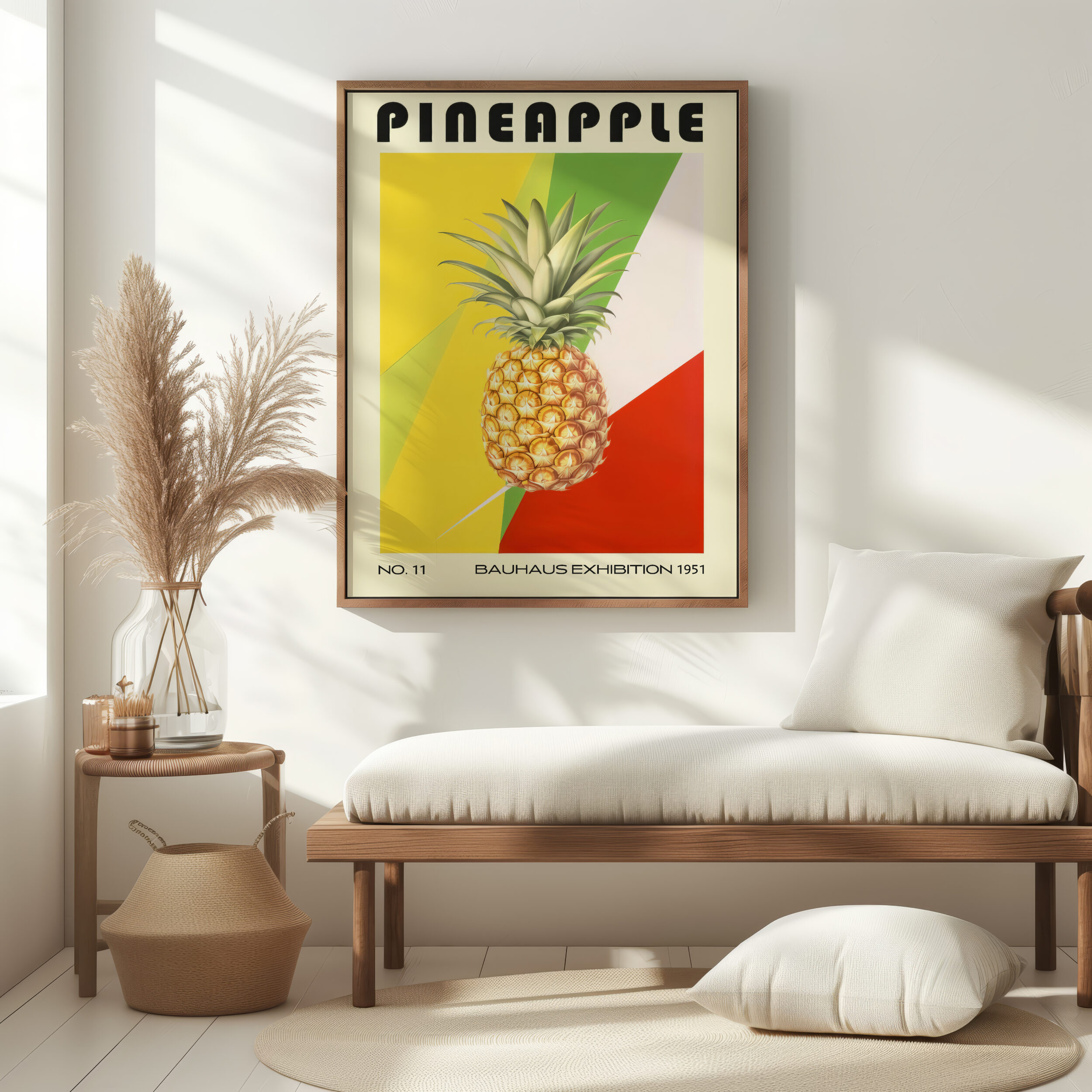 This captivating print features a ripe pineapple set against a geometric abstract background that cleverly uses bold, bright colors to create a striking visual impact. The image blends the organic shape of the pineapple with sharp diagonal lines, evoking a sense of movement and energy. Perfect for adding a tropical flair to any space, this print is both an homage to traditional fruit still-life and a modern twist with its colorful, abstract design elements. Whether you’re looking to spruce up a kitchen, dining area, or just bring some vibrancy to a living space, this pineapple print is an excellent choice.