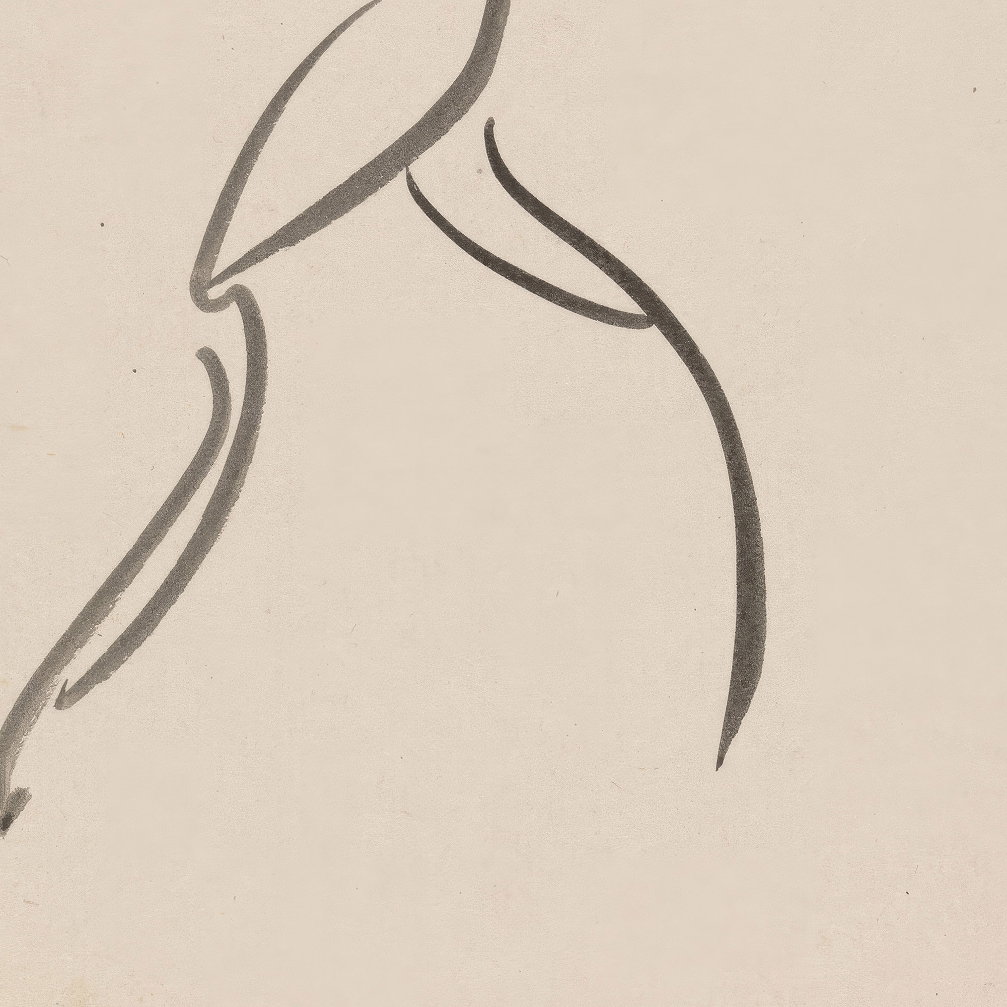 This artwork by Henri Gaudier-Brzeska, known as “Dancing Figure, in Profile,” uses minimal, flowing lines to represent the form and dynamism of a dancer. The artwork captures the essence of motion through its curved contours and simplified detail, stripping the figure down to its most basic elements. The linear construction of the subject brings forth a sense of rhythm and elegance, embodying the spirit of dance and its ability to convey emotion through the body’s movement. The print evokes a feeling of fluidity and grace, inviting viewers to appreciate the economy of line and the power of abstraction in portraiture.