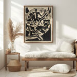 “Freunde in der Natur III” by August Babberger is a striking expressionist print that captures the essence of human connectivity through an abstract lens. The use of sharp, angular lines and deep contrasts in the work creates a sense of movement and interaction among the depicted figures. Its monochromatic palette emphasizes the forms and the rhythmic patterns, suggesting a dance or gathering in a natural setting. This artwork embodies a robust, raw quality that invites viewers to interpret the relationships and narrative within the geometric abstraction.