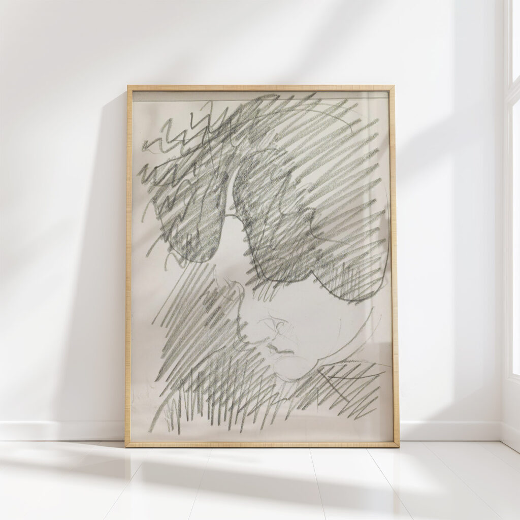 “Hoofd van een vrouw met opgestoken haar” by Reijer Stolk is a dynamic print depicting a female figure in profile view. The focus is on her facial features delicately sketched, capturing the essence of the subject with minimal yet impactful lines. Her hair is depicted in an updo style, with the lines conveying both texture and movement. The artist’s use of shading and bold strokes adds depth and character to the print, giving the viewer a glimpse into the woman’s serene demeanor. The composition is a testament to the artist’s ability to convey form and emotion through simplicity in this striking representation.