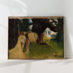 This evocative scene by Zygmunt Grabowski is steeped in the aura of fairy tales. In a lush, foreboding landscape, a brave figure approaches the menacing mouth of the dragon’s den, which exudes danger. A lone horse, clad with a saddle, stands serenely, as if awaiting the outcome of an imminent, extraordinary encounter. Rich, earthy tones and enigmatic shadows give the artwork a compelling depth, transporting viewers to a realm of myth and legend.