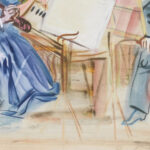 “Le Trio Casals – Raoul Dufy” is a dynamic representation of a musical ensemble in the midst of a passionate recital. The image captures the pianist’s focused stance at the keyboard, the violinist’s delicate grip on the bow, and the cellist’s absorbed interaction with his instrument. Dufy’s use of bold, vivacious colors and fluid lines conveys the motion and spirit of the music being created, inviting viewers into the intimate world of artistic performance. The visible brushstrokes and abstracted forms reflect the rhythms and harmonies played by the trio, creating a visual symphony on canvas.