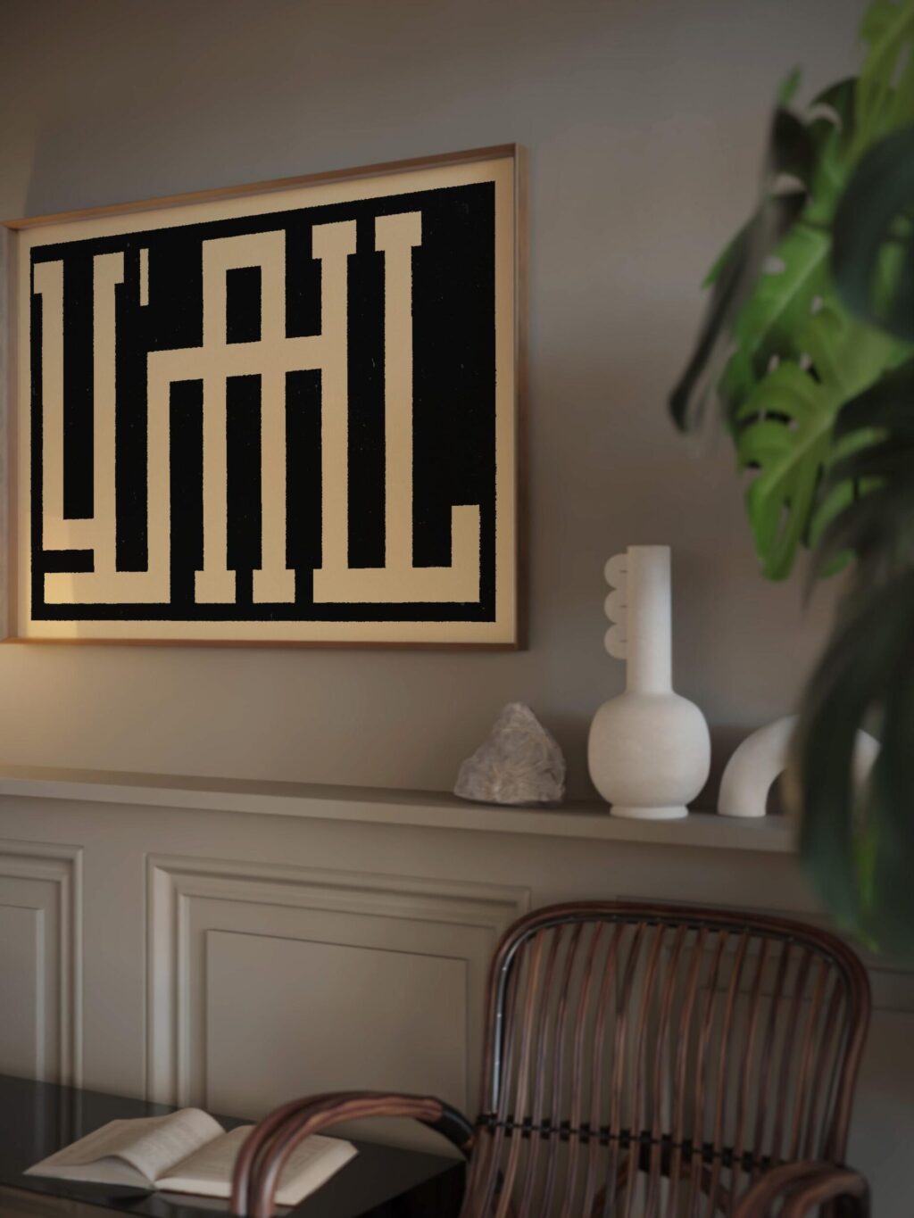 This high quality print features a bold and impactful typography design, primarily in black and white, creating a striking visual contrast. The art piece showcases the interplay of negative and positive space, bringing a sense of modern elegance to any space. It’s an excellent choice for those looking to add a touch of sophistication to their home or office. The minimalist color scheme ensures it will complement a wide range of interior decors while making a confident statement.