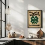 This whimsical print creatively combines the pi symbol with a four-leaf clover, adding a playful twist to mathematical charm. The bold typography stating “My Lucky Number is” followed by the sequence of pi numbers, 3.14159265359, offers a unique blend of science and superstition. This piece serves as a perfect conversation starter, adding a distinctive and intellectual flair to any space. The vintage-inspired background with a weathered texture adds character and a timelessness to the decor piece.