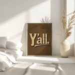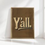 This Typography Print features the southern colloquialism “Y’all” in bold, vintage-style lettering. The warm neutral colors and classic typeface create a nostalgic feel, making it a perfect accent for any space that appreciates a touch of southern charm. The design encapsulates a mid-century aesthetic, ideal for adding personality and a retro flair to your decor. It celebrates the simplicity and directness of traditional typography while bringing a sense of warmth and familiarity to your environment.